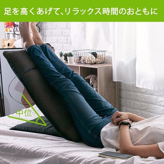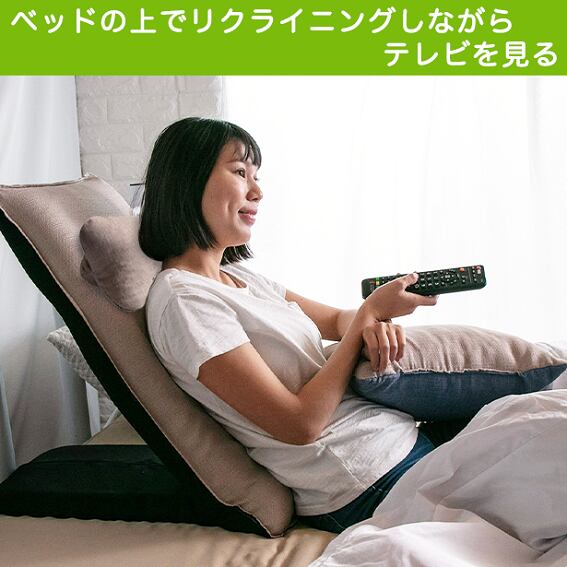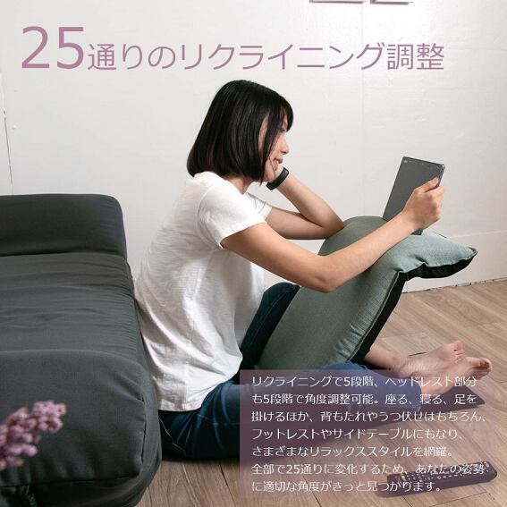 リクライニング5段階、ヘッドレスト部分も5段階で角度調整可能。背もたれやうつ伏せはもちろん、フットレストやサイドテーブルにもなり、さまざまなリラックススタイルを網羅。全部で25通りに変化するため、あなたの姿勢に適切な角度が、きっと見つかります。