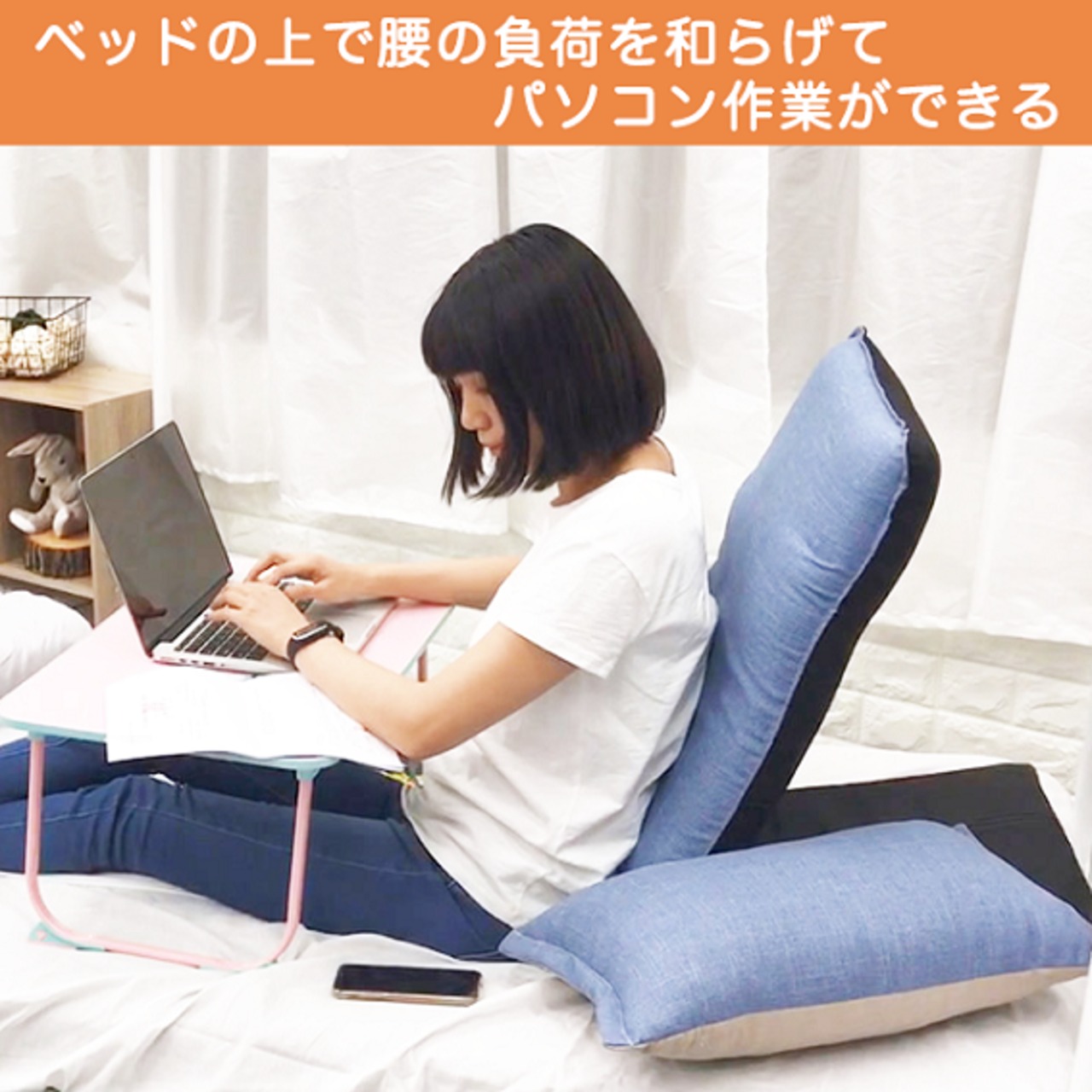 3.背もたれを立てて使用する際は、LazyUpを壁などに当てて滑りにくくすることをお勧めします。